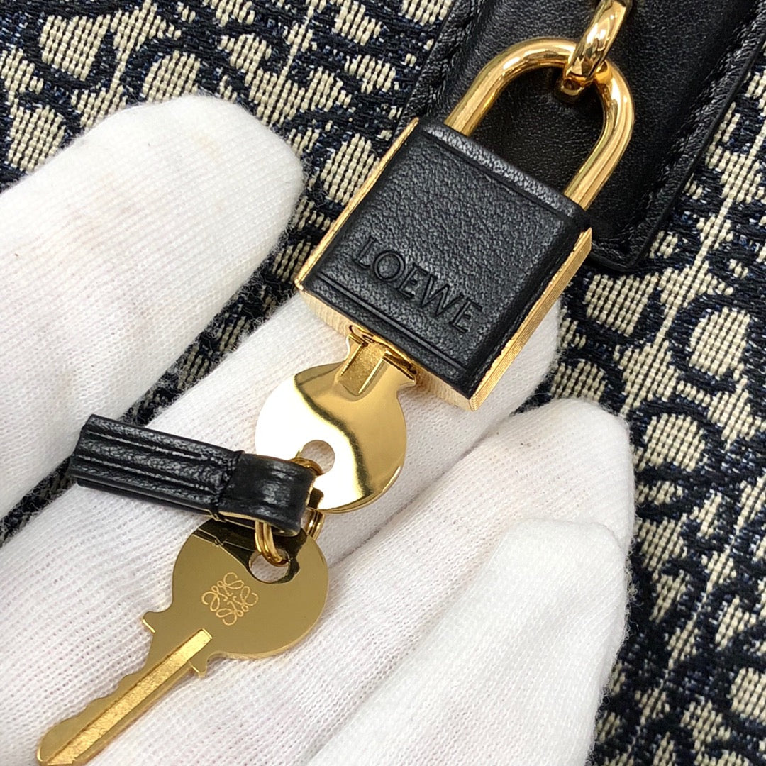 LOE AMAZONA 19 BAG IN BLACK CALFSKIN AND MONOGRAM JACQUARD