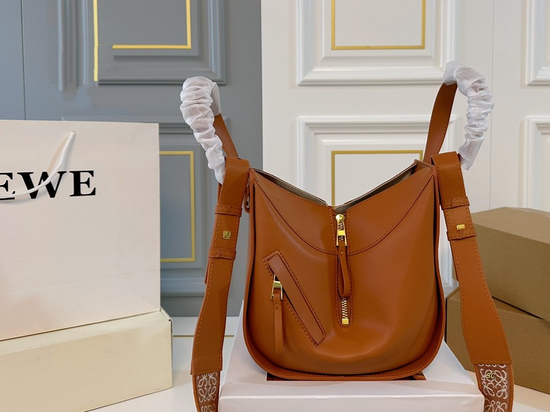 LOE 25 COMPACT HAMMOCK BAG IN OAK SATIN CALFSKIN
