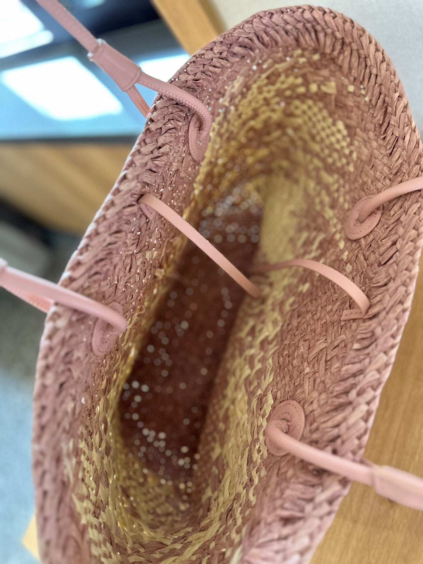 LOE SMALL ANAGRAM BASKET 28 BAG IN TURKISH ROSE IRACA PALM AND CALFSKIN