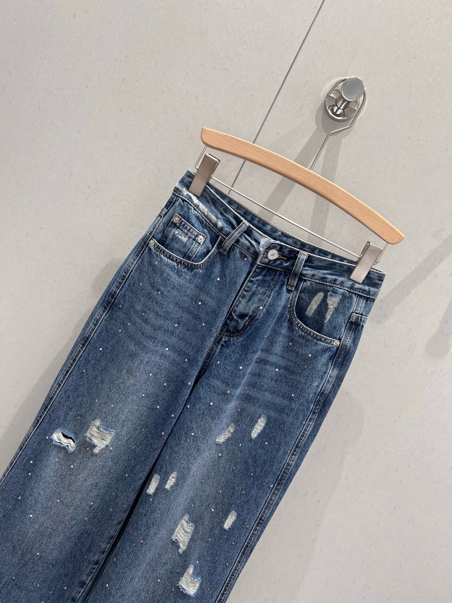 Loewe 25 Diamond Hole Straight Jeans Blue Cotton 217426