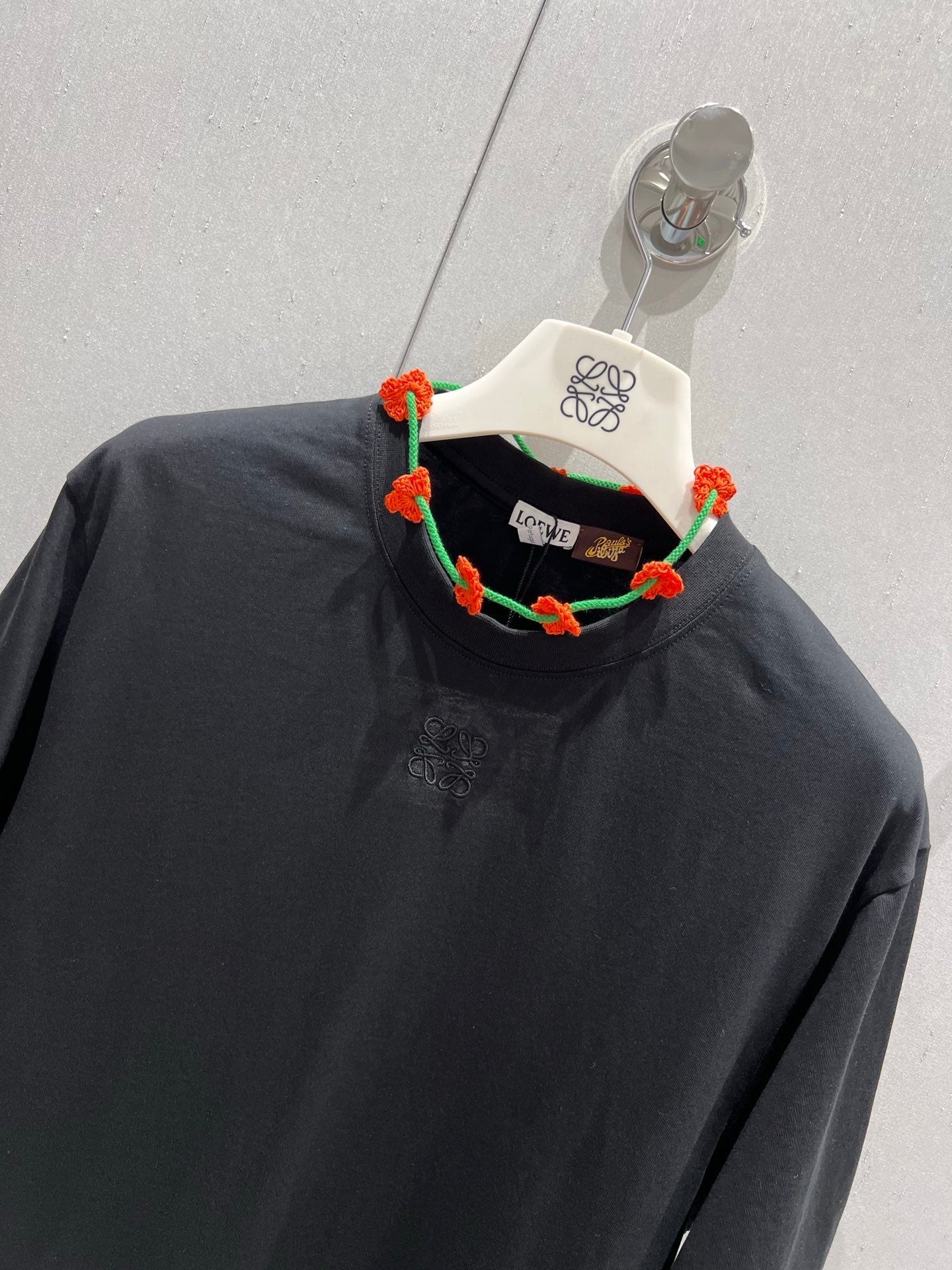 Loewe 25 Floral Neck Halter T-shirt Black Cotton 218253