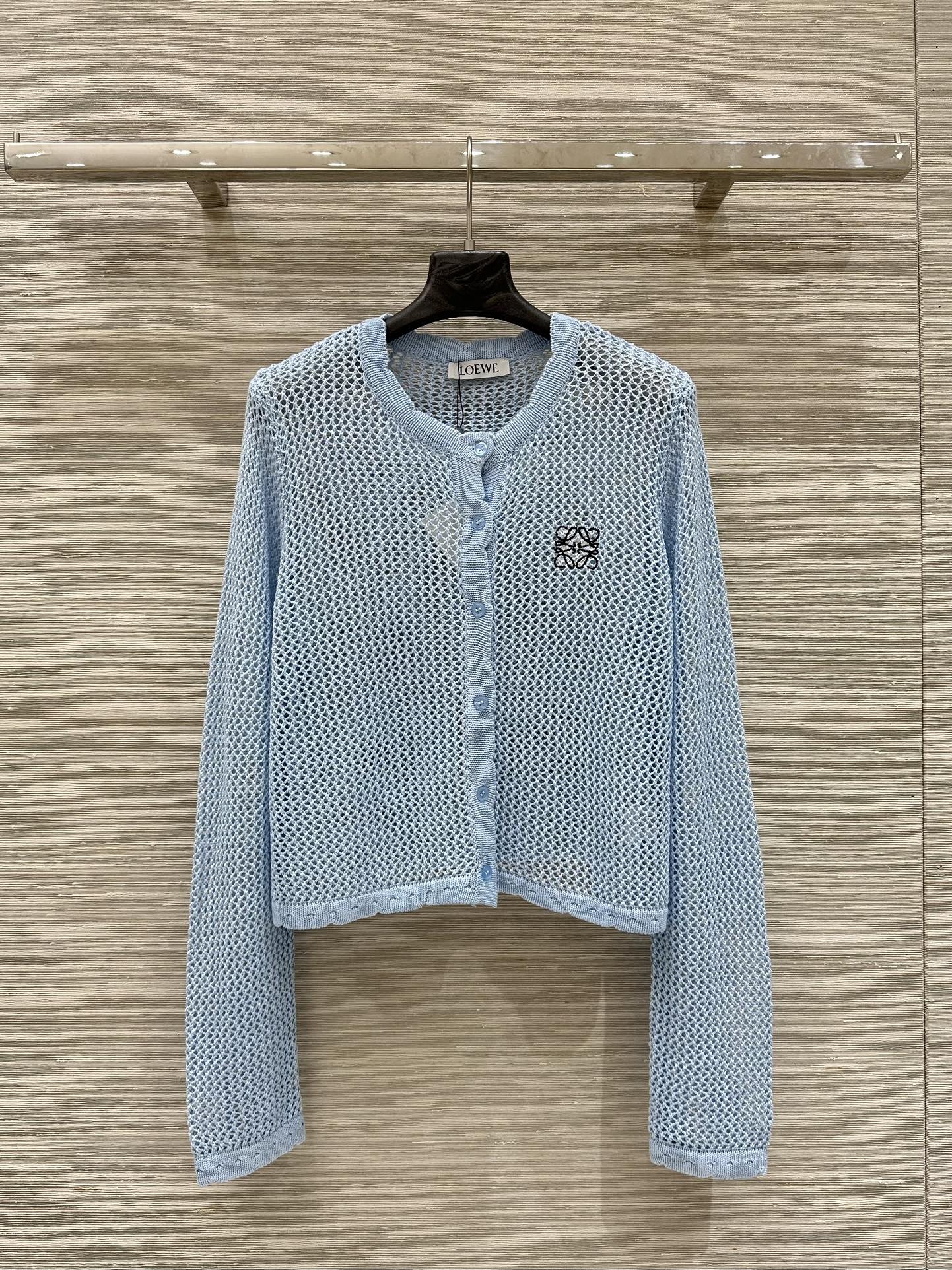 Loewe 25 Mesh Hollow Knitted Cardigan Blue Wool
