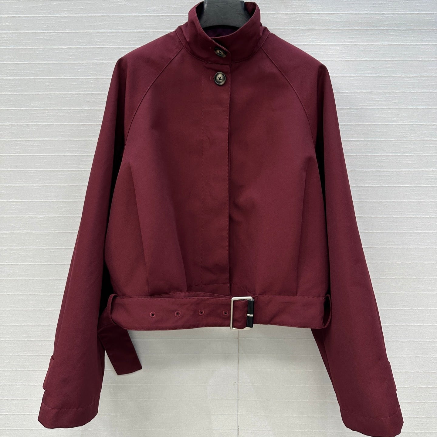 Loewe 25 Stand Collar Short Trench Coat Burgundy Red Cotton Nylon 224272
