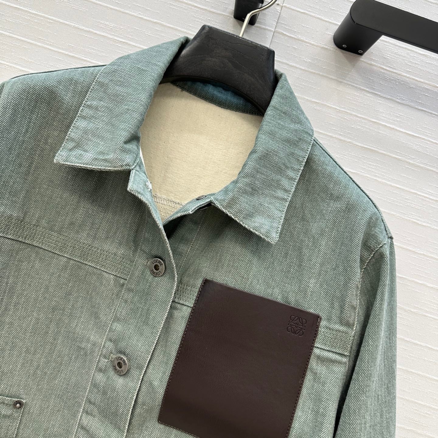 Loewe A-line Denim Shirt Jacket Green Cotton