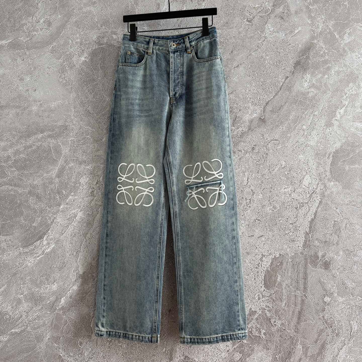 Loewe 25 Pocket Embossed Letter Straight Jeans Blue Cotton