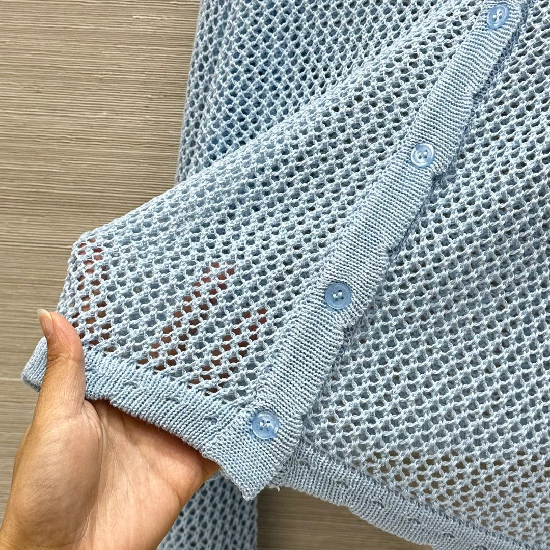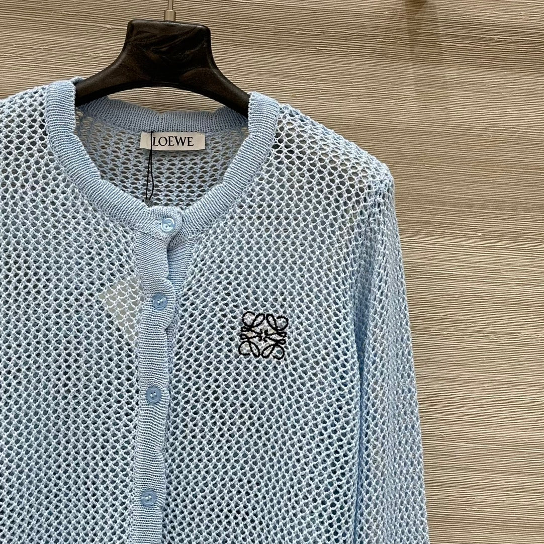 Loewe 25 Mesh Hollow Knitted Cardigan Blue Wool