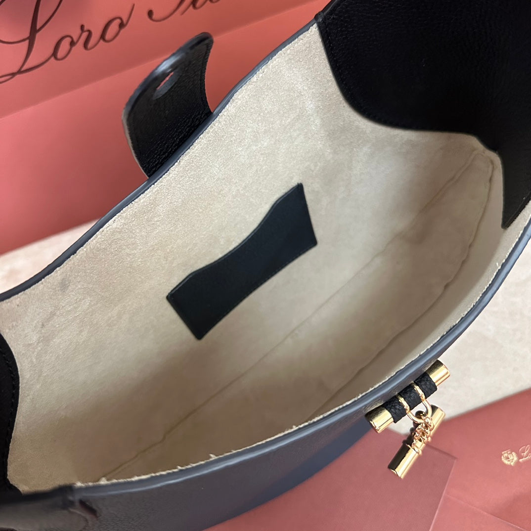 BOBBIN SHOULDER BAG 32 IN PRUSSIAN BLUE MIX BLACK CALFSKIN WITH GOLD HARDWARE