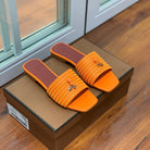 Quare Toe Sprightly Charms Mule Orange Marron Calfskin