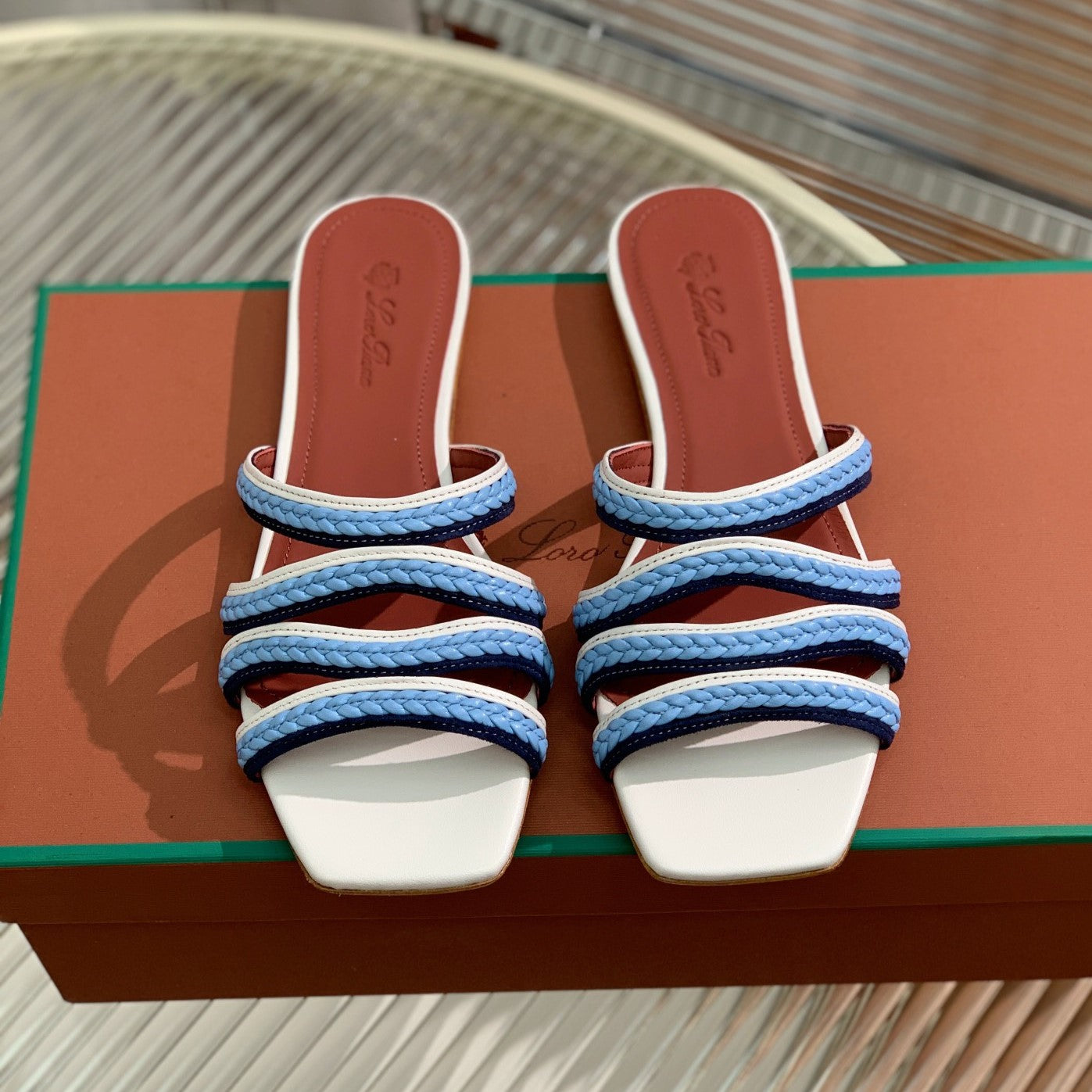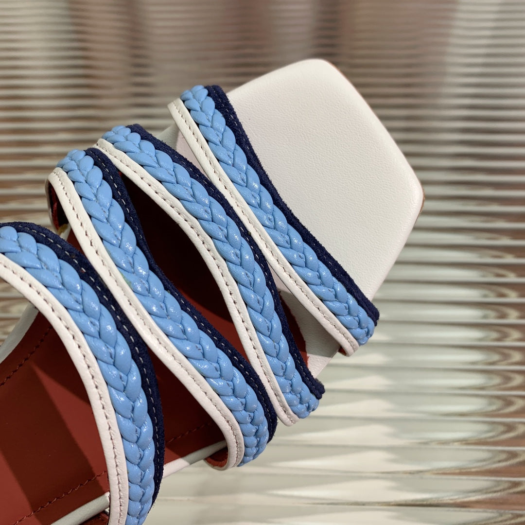 Sprightly Charms Mule White Cloud Blue Navy Calfskin