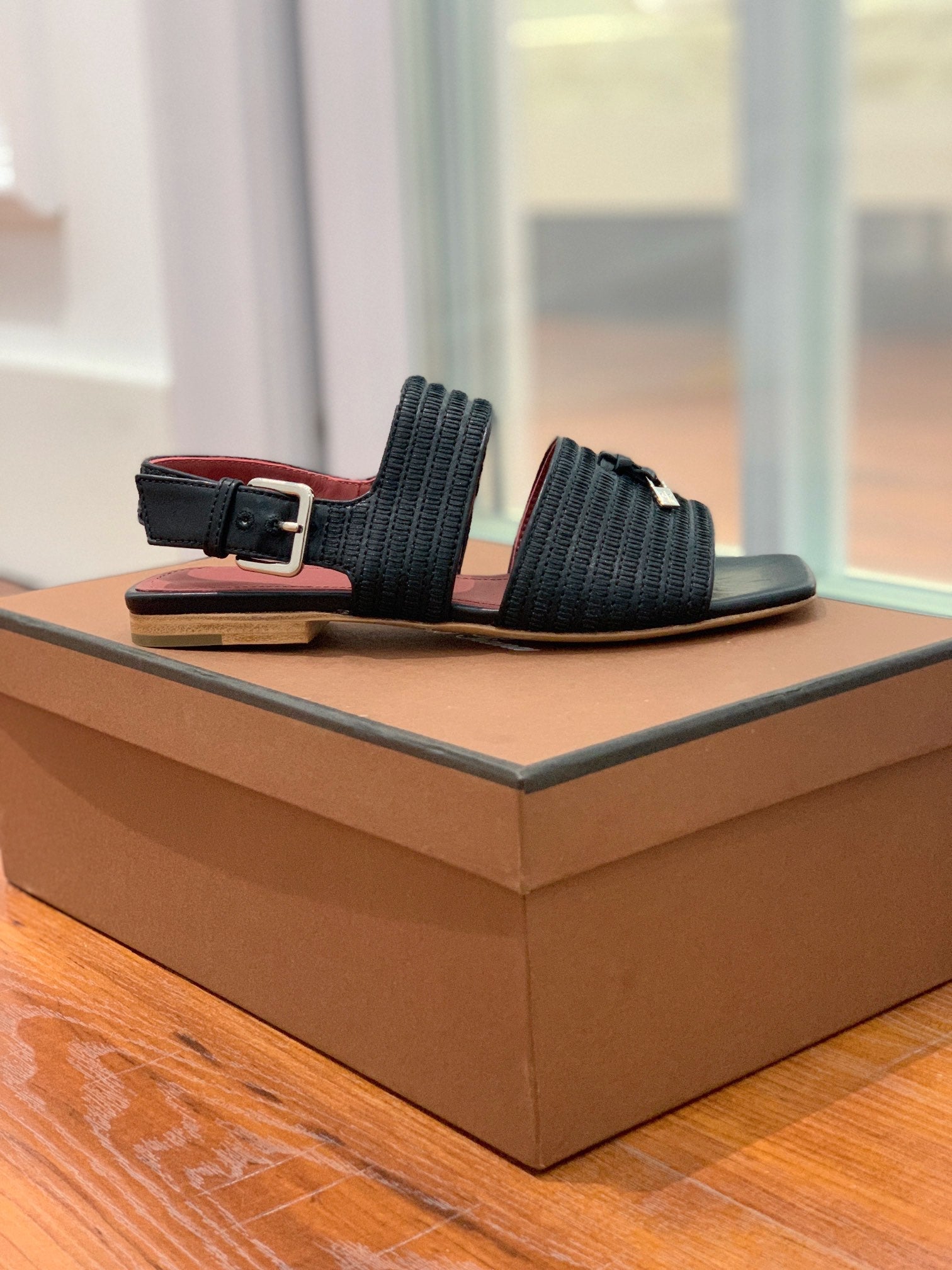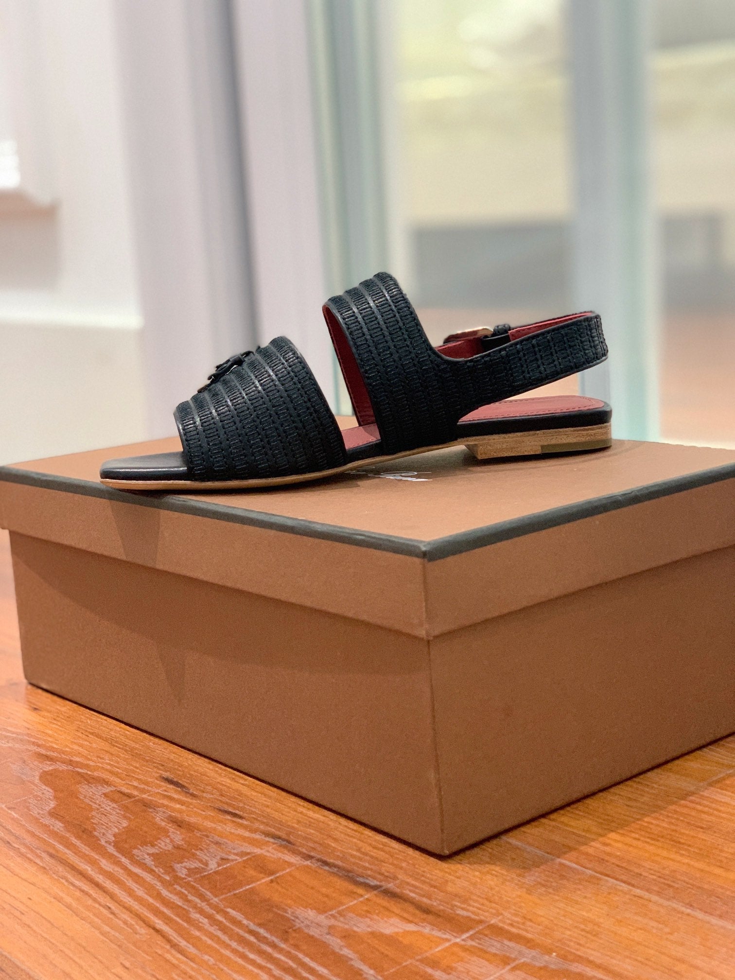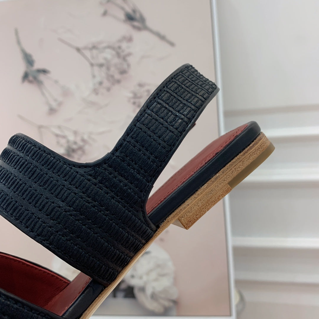Springthly Charms Flat Sandals Black Maroon Calfskin