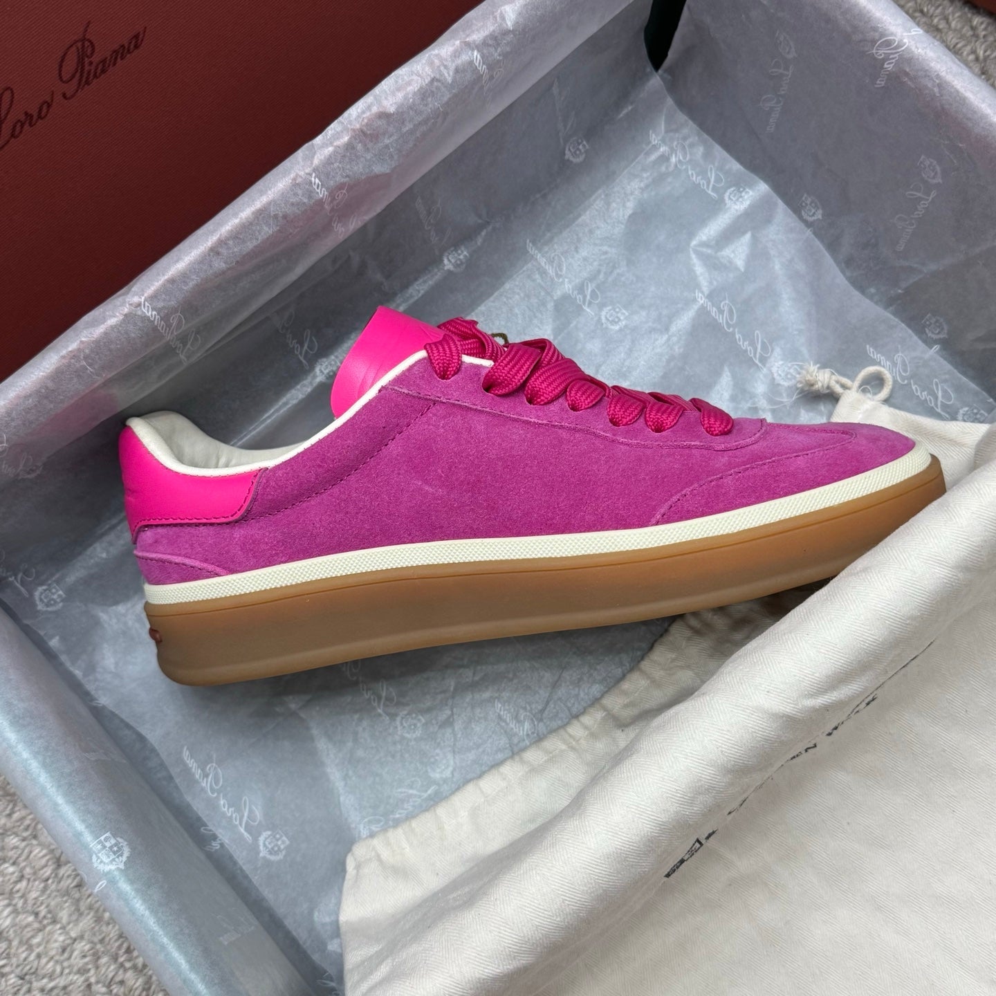 LP sneaker unisex style hot pink sheepskin mix suede 384719