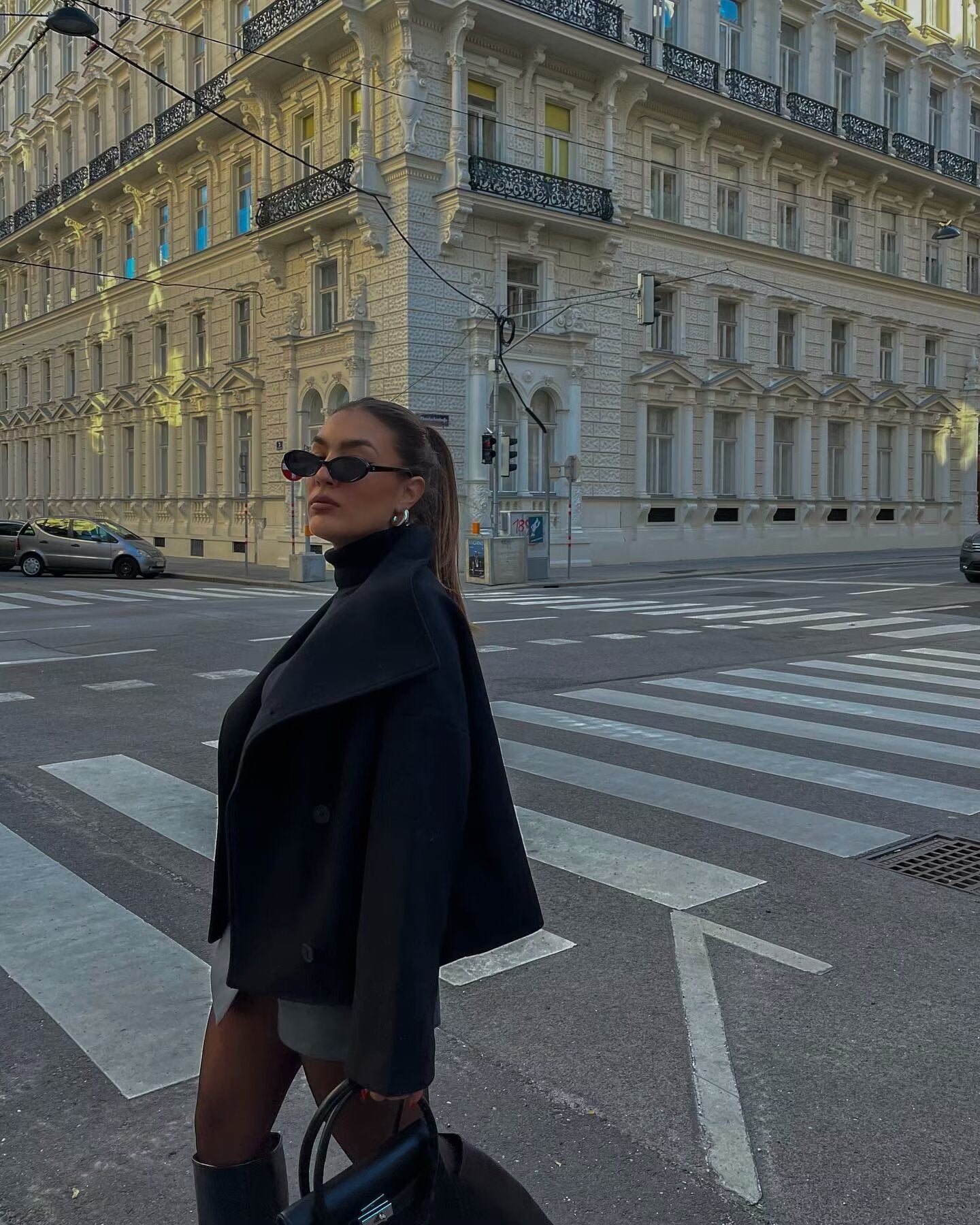 Ajoutez ce manteau noir croisé à votre dressing et adoptez une élégance intemporelle au quotidien !