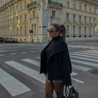 Avec sa coupe ample et sa double rangée de boutons, ce manteau incarne l’élégance intemporelle. Son col large apporte une touche de sophistication, tandis que sa teinte noire sobre en fait un indispensable facile à associer avec toutes vos tenues.