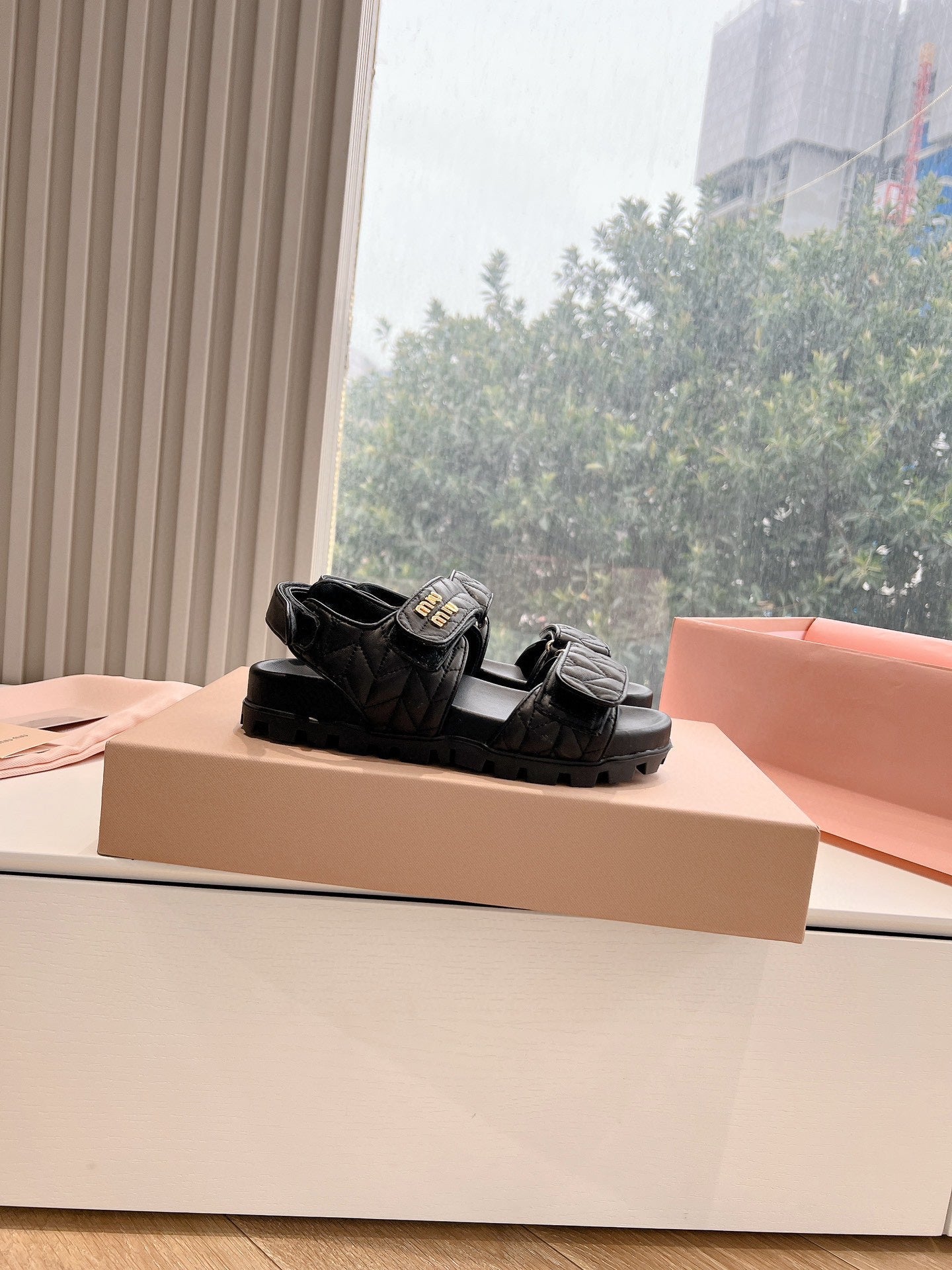 miu dad sandal black calfskin