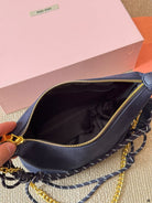 CHAIN SHOULDER BAG 19 IN NAVY BLUE FABRIC GOLD HARDWARE