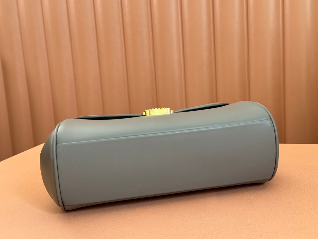 BEAU TOP HANDLE BAG 28 IN LAVA GREY GLOSSY CALFSKIN GOLD HARDWARE