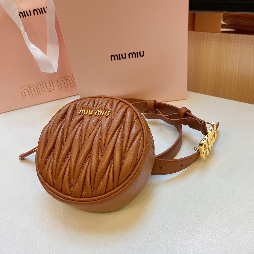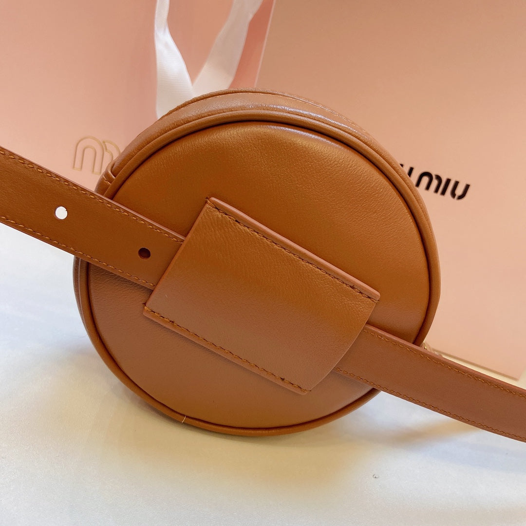 miu brown belt 20mm with circle matelasse bag