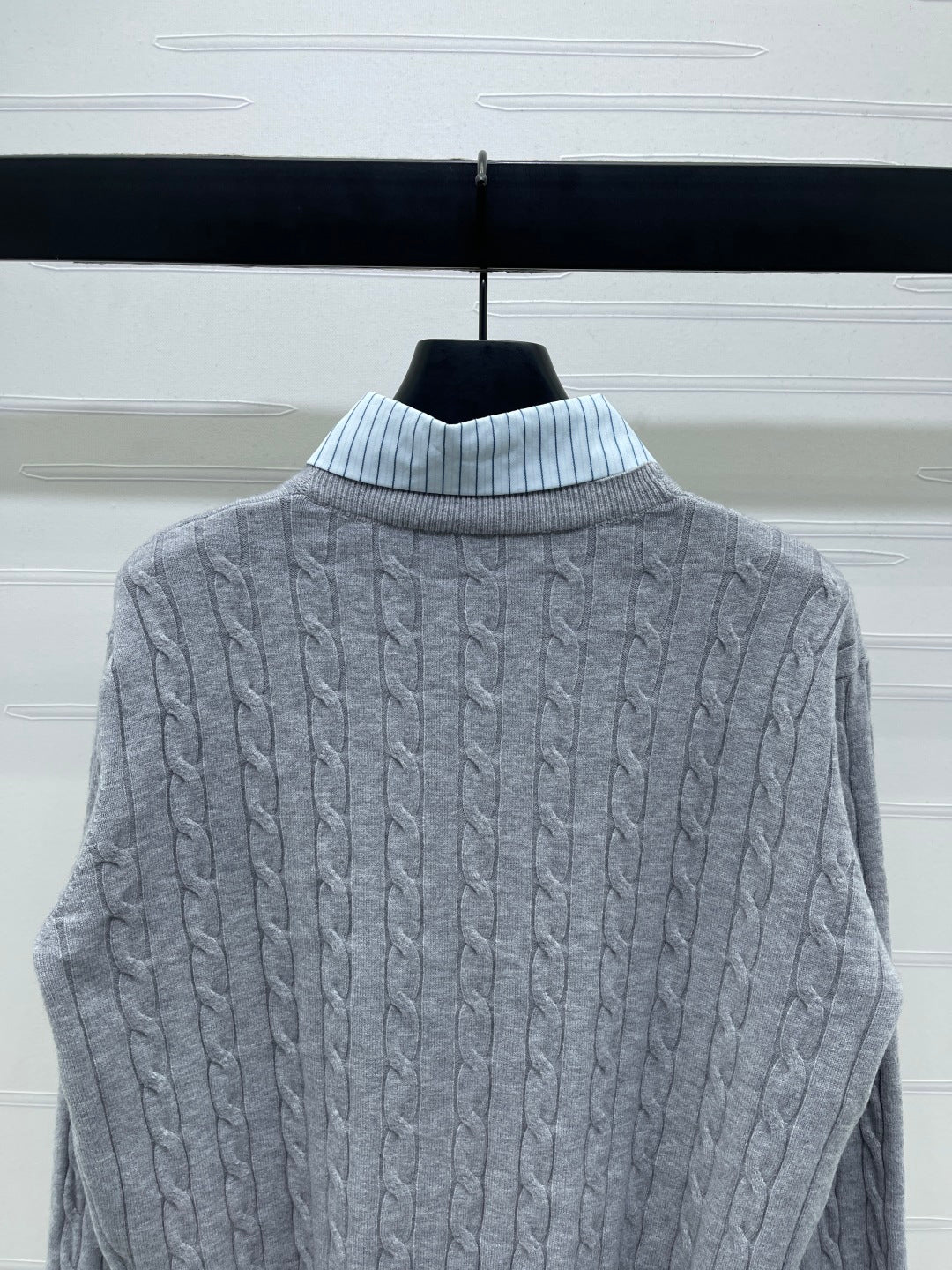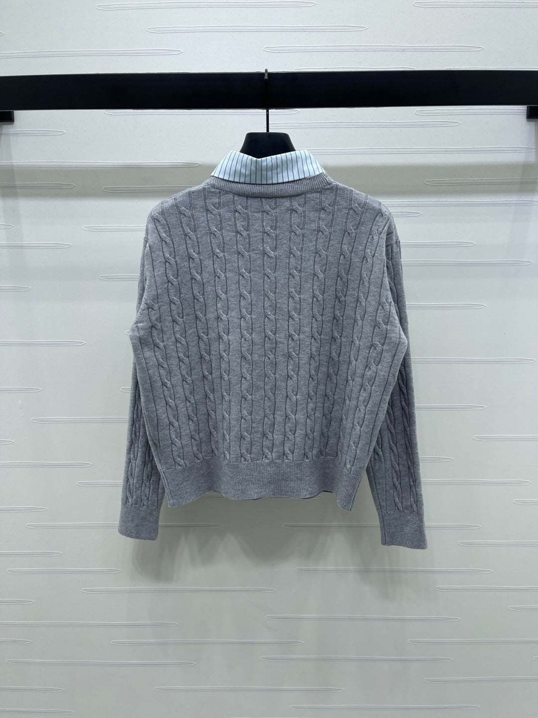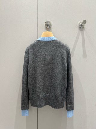 Miu Miu 25 Cardigan Grey Mix Navy Wool 303603