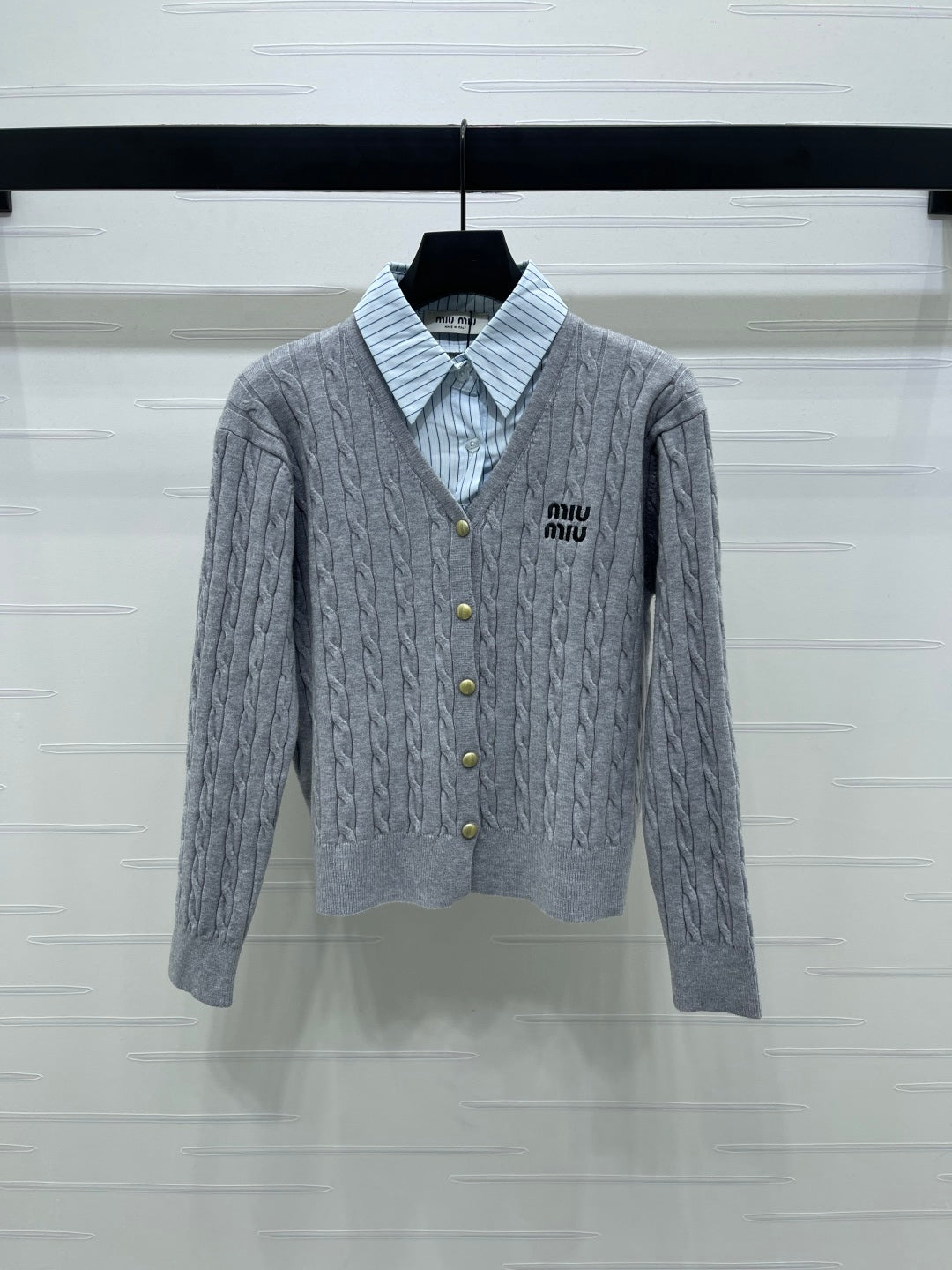 Miu Miu Polo Collar Cardigan Gray Cashmere