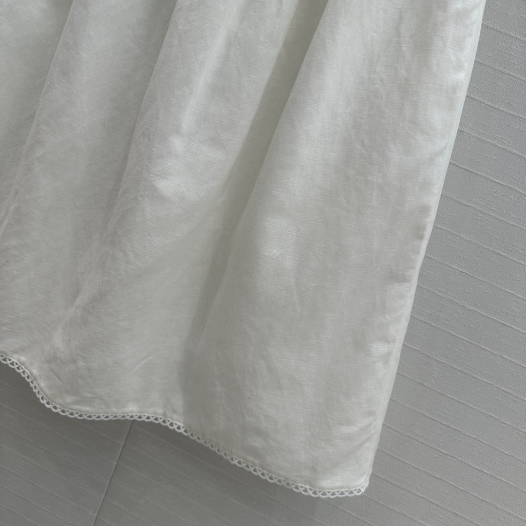 Miu Miu 2025 Logo Embroidered Long-sleeved Shirt White Cotton