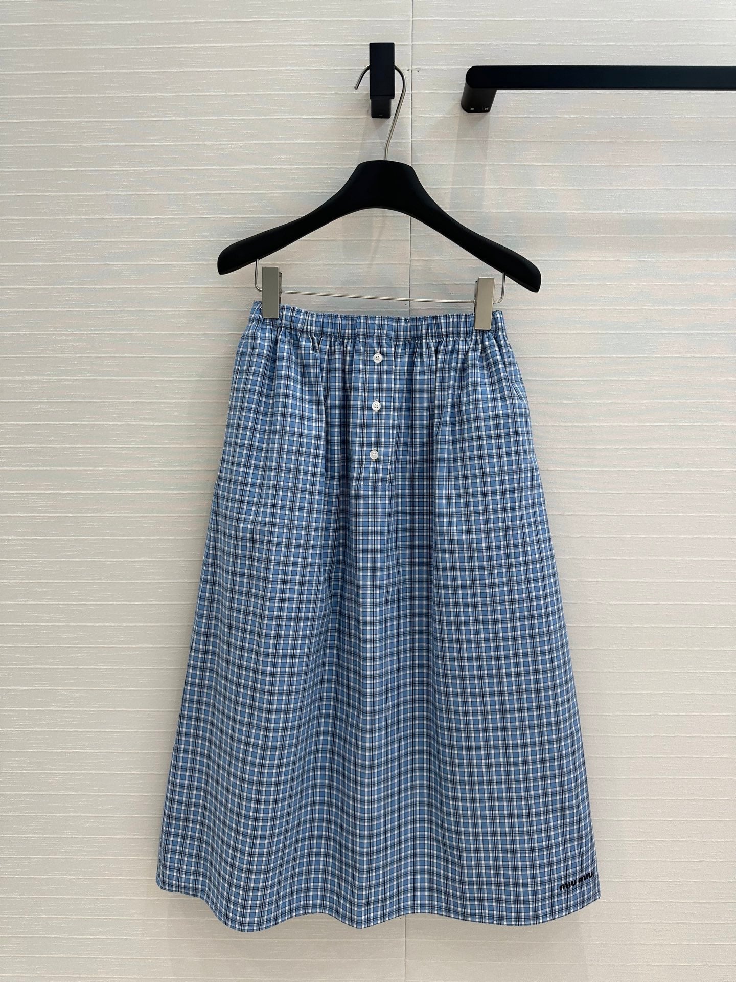Miu Miu Plaid Skirt Blue Cotton