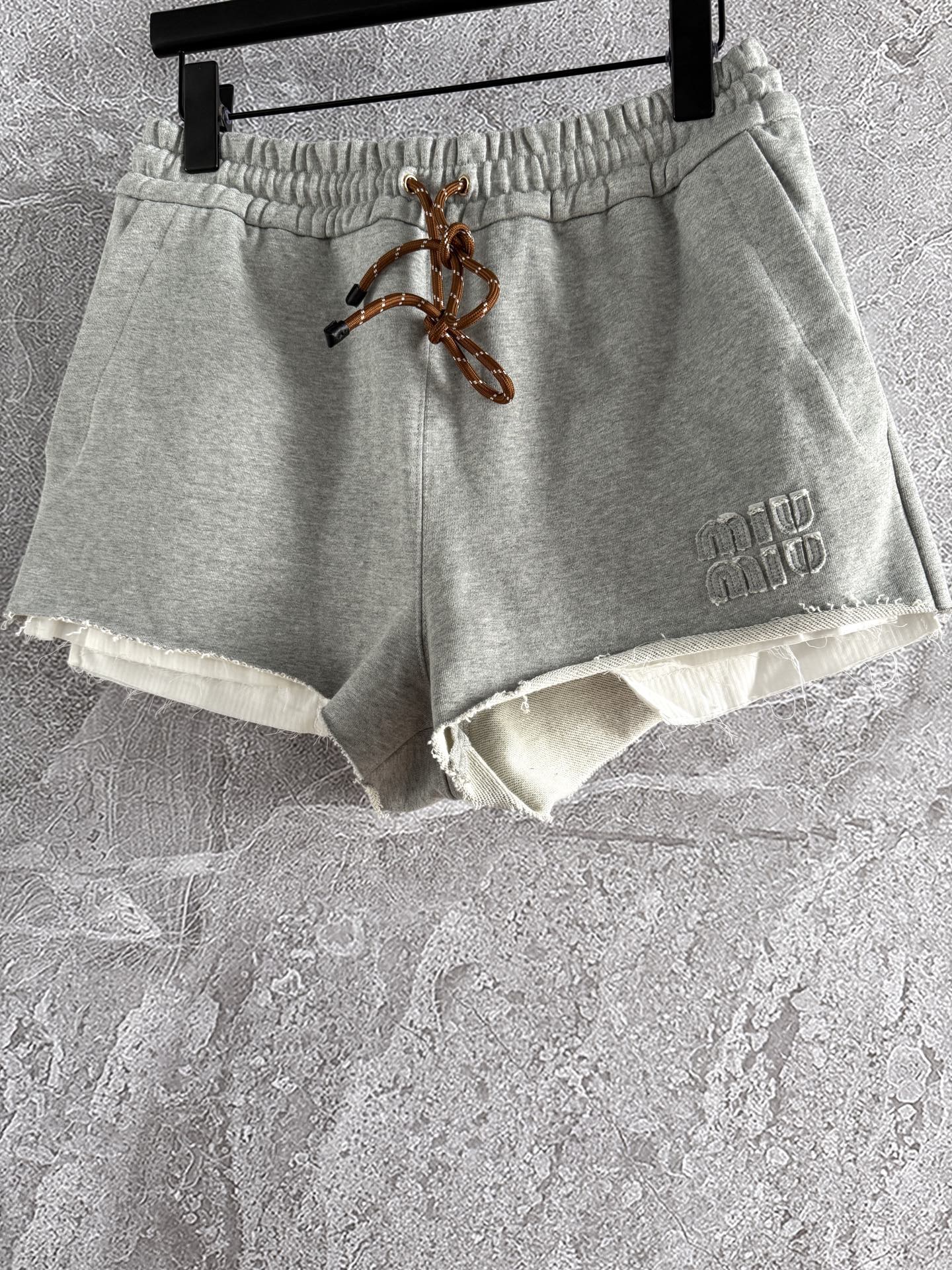 Miu Miu Drawstring raw edge shorts Ligth Gray Cotton
