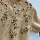 Miu Embroidered Cashmere Short Sleeve Cardigan 229364