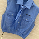 Miu Miu 25 Bow Tie Vest Shirt Blue Cotton