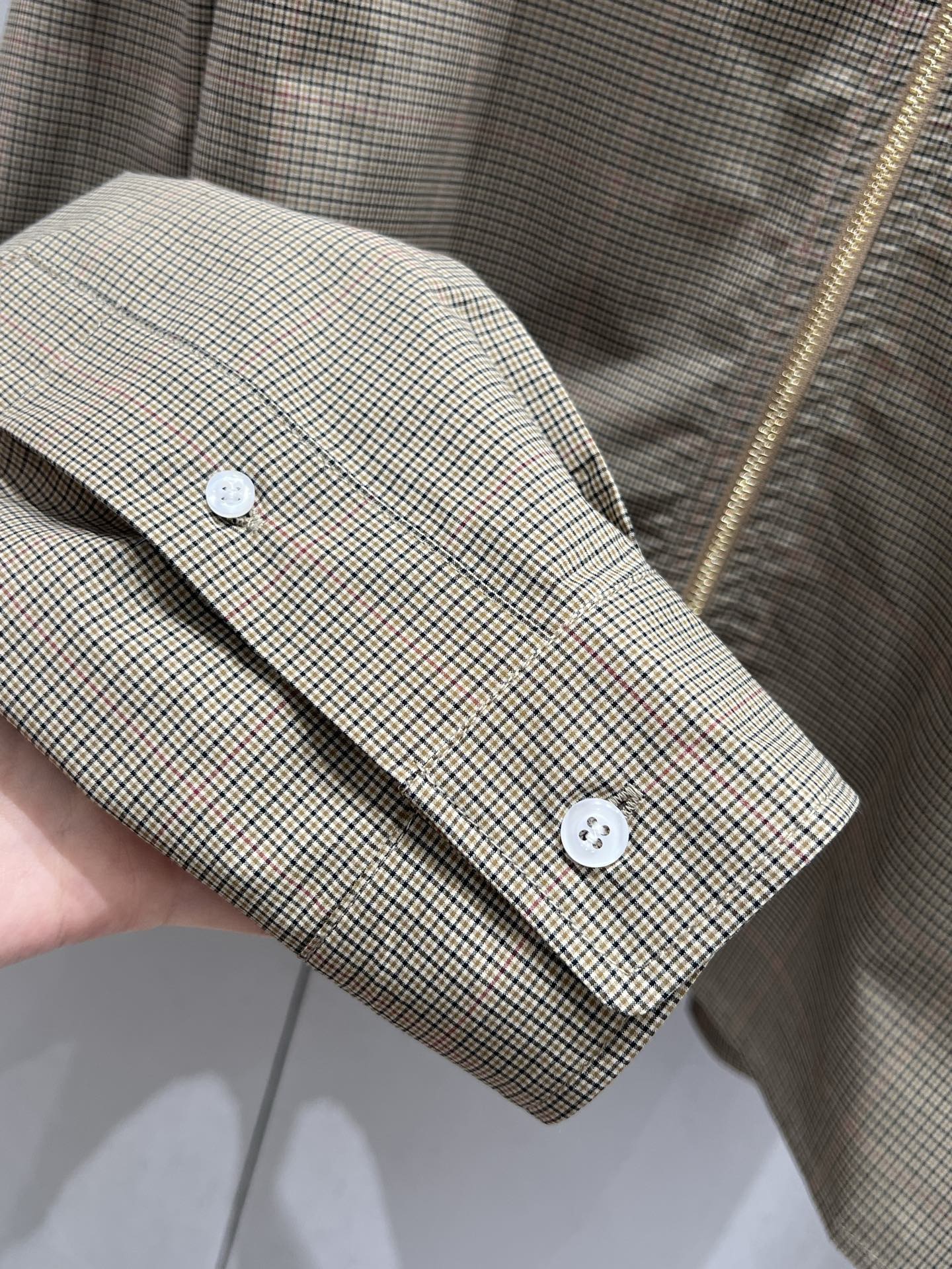 Miu Miu 25 Plaid Lapel Zipper Shirt Brown Cotton 211152