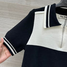 Miu Miu 25 Polo Collar Short-sleeved Top Black White Tencel