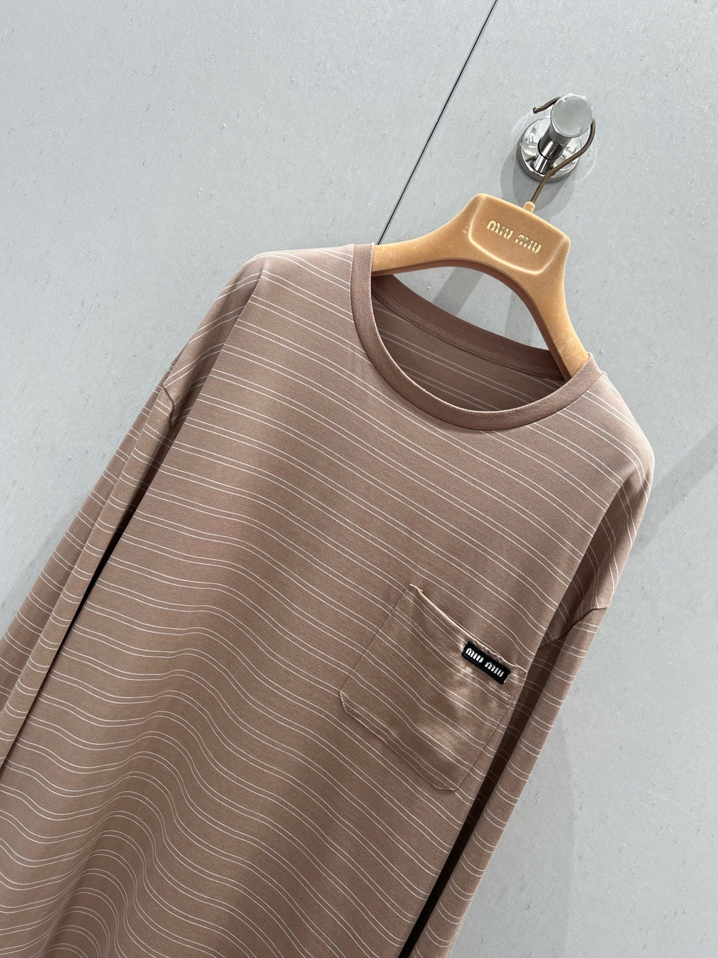 Miu Miu 25 Striped Long-sleeved T-shirt Brown Cotton 211207