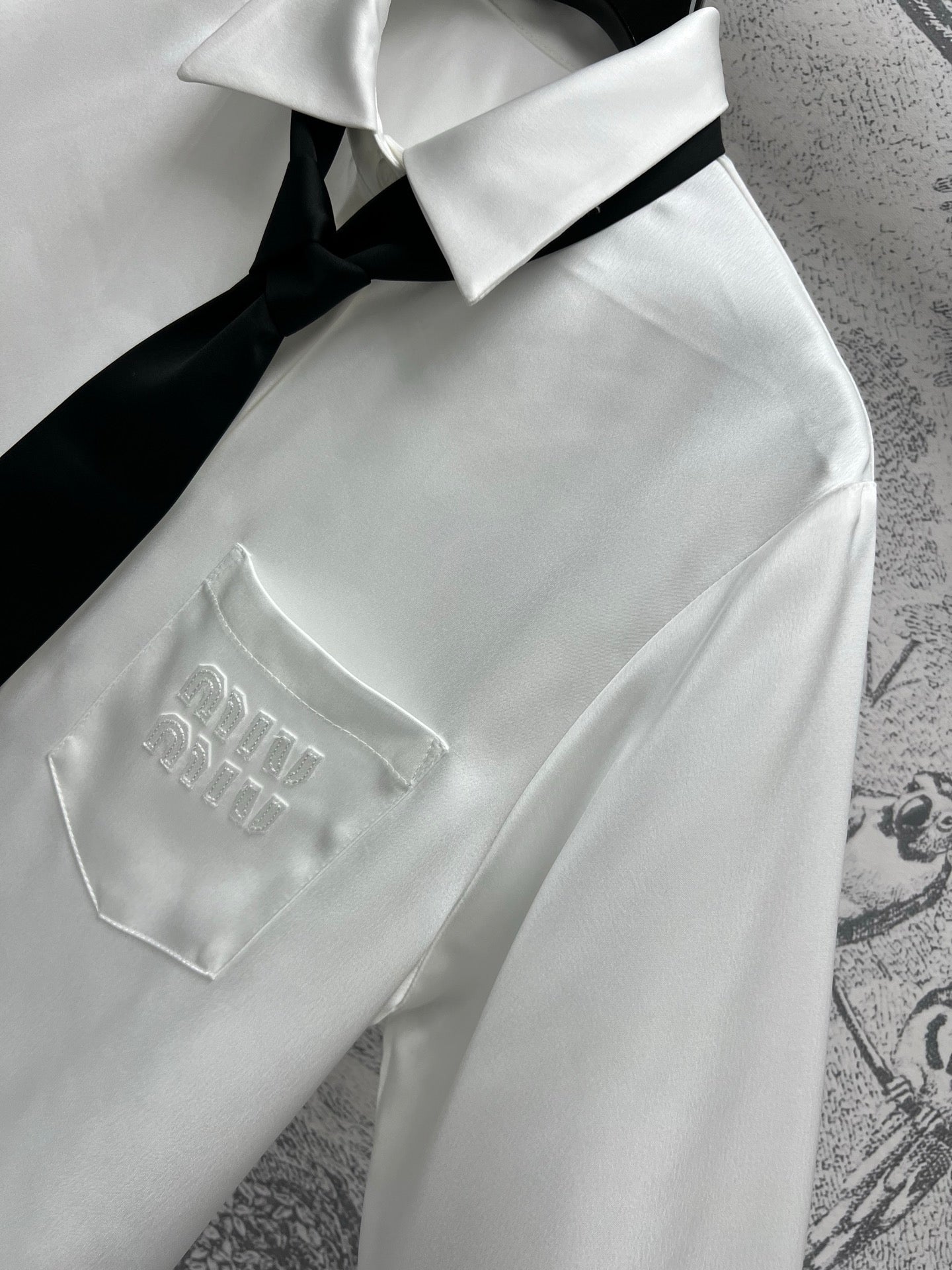 Miu Miu 25 Tie Shirt White Black Polyester