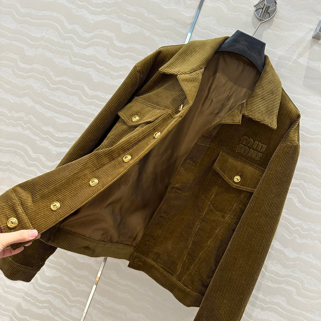 Miu Miu Corduroy Jacket Olive Green Cotton
