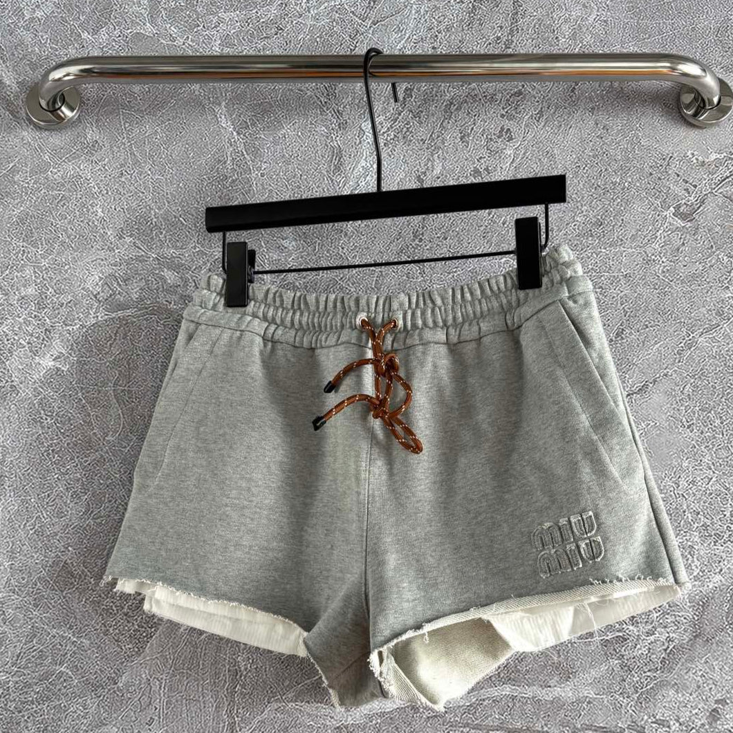Miu Miu Drawstring raw edge shorts Ligth Gray Cotton