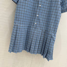 Miu Miu Plaid Pleated Shirt Dress Blue Cotton