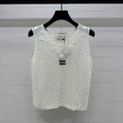 Miumiu 25 White Knitted V-neck Tank Top