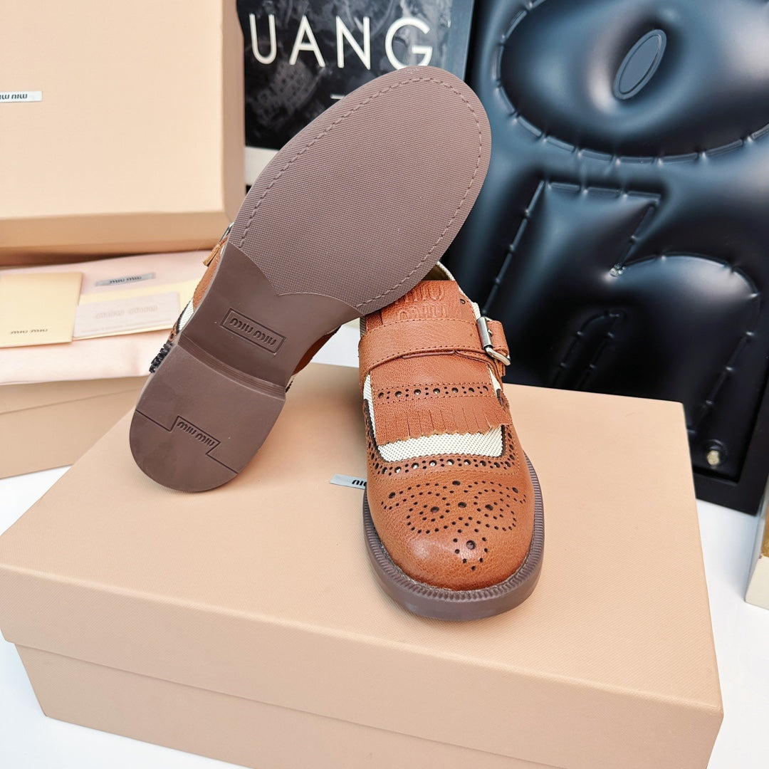 Miu Loafers T-Strap Tabacco Color Cowhide