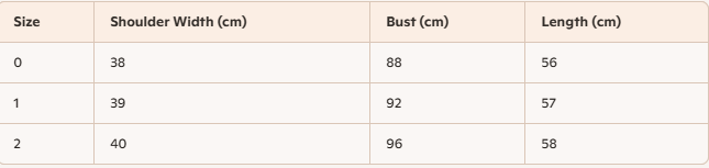 • Size : 0,1,2