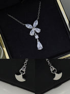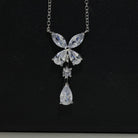 BUTTERFLY PEAR SHAPE CLASSIC SILVER DIAMOND DROP NECKLACE