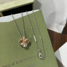 CLOVER 1 DIAMOND PINK GOLD SILVER NECKLACE