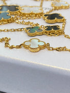 CLOVER ONYX MOP 16 MOTIF GOLD 130CM NECKLACE