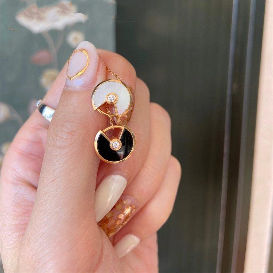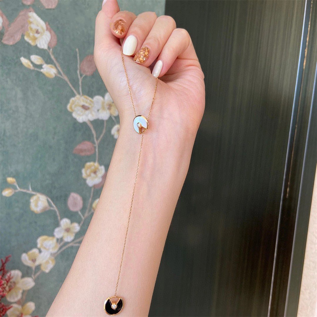 DOUBLE AMULETTE PINK GOLD ONYX MOP NECKLACE