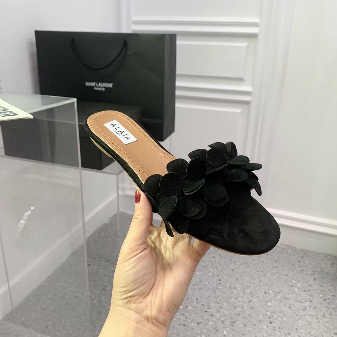 Alaia 25 Flower Slippers Black Sheepskin 293157