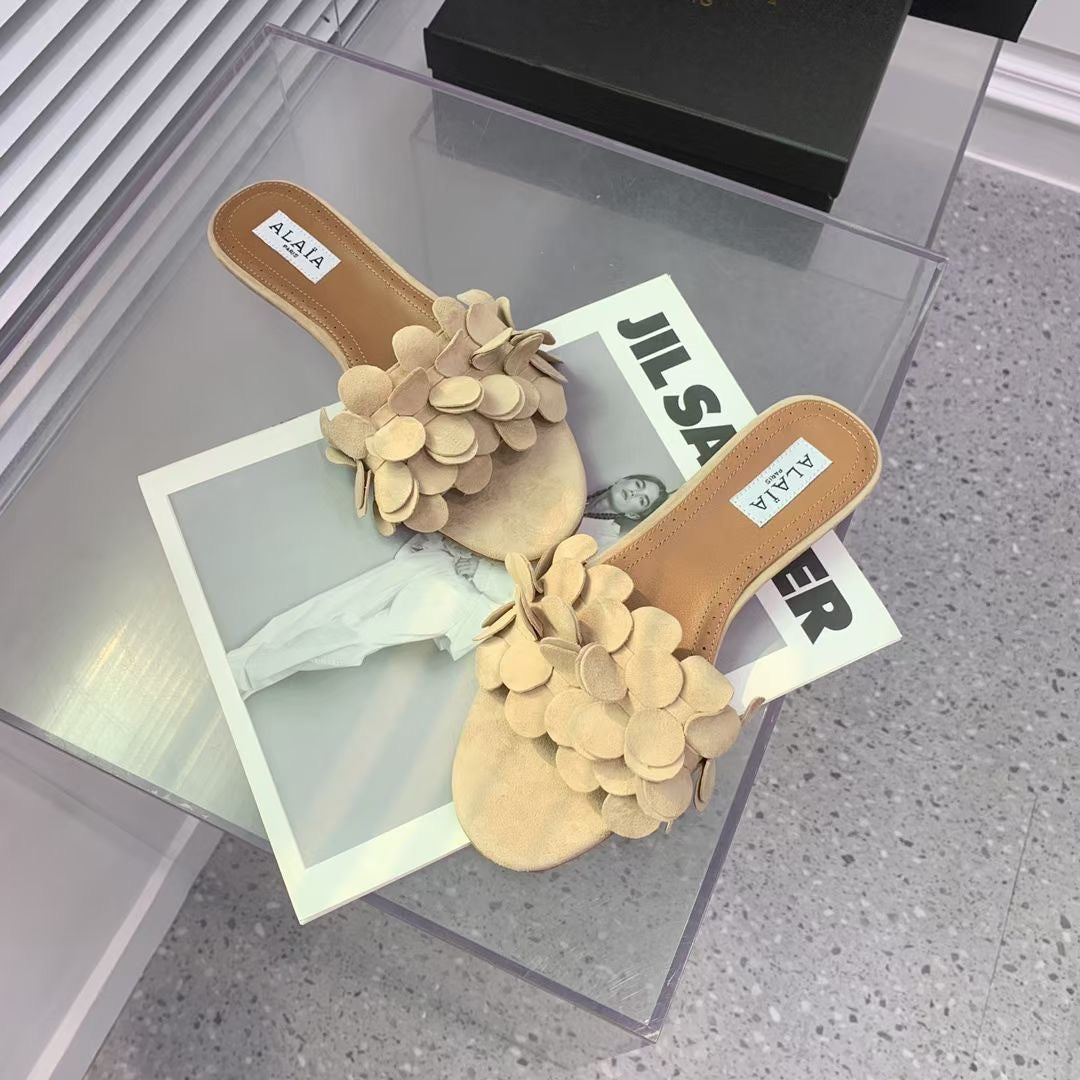 Alaia 25 Flower Slippers Black Sheepskin 293157