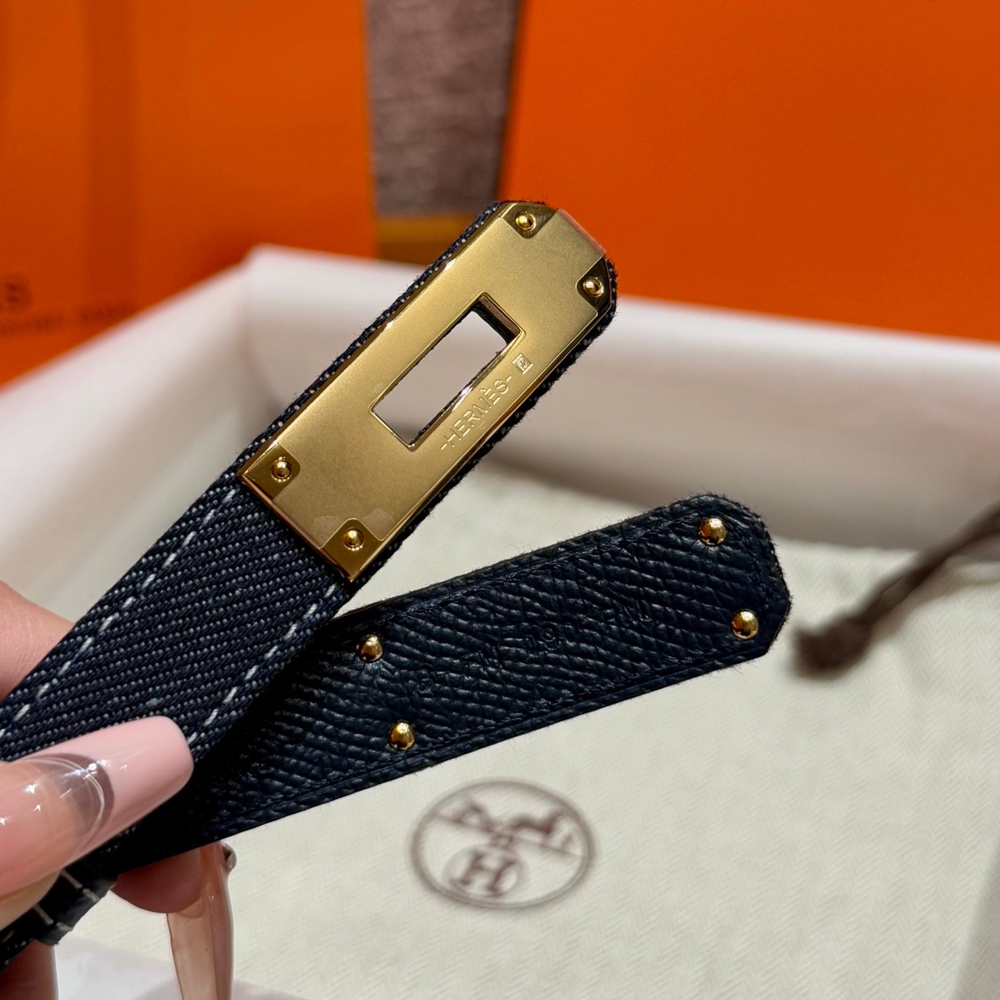 HM Kelly Belt 18mm Dark Blue Canvas Epsom Leather