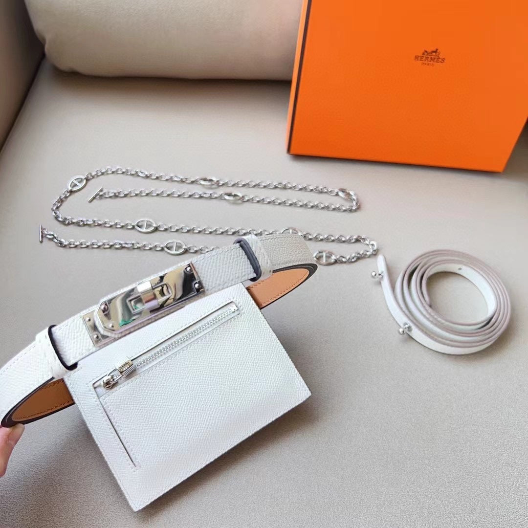 hm kelly belt 18mm with kelly pocket white epsom silver hardware