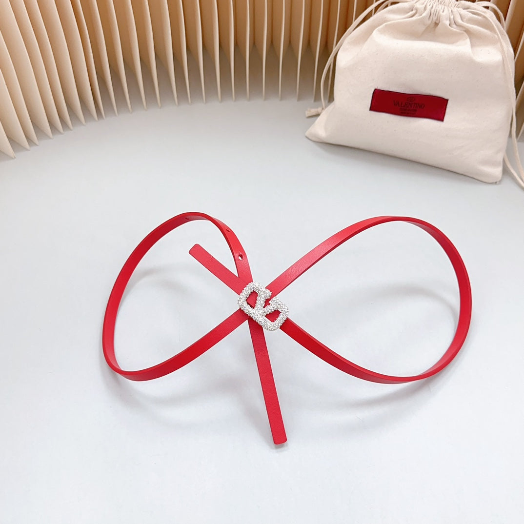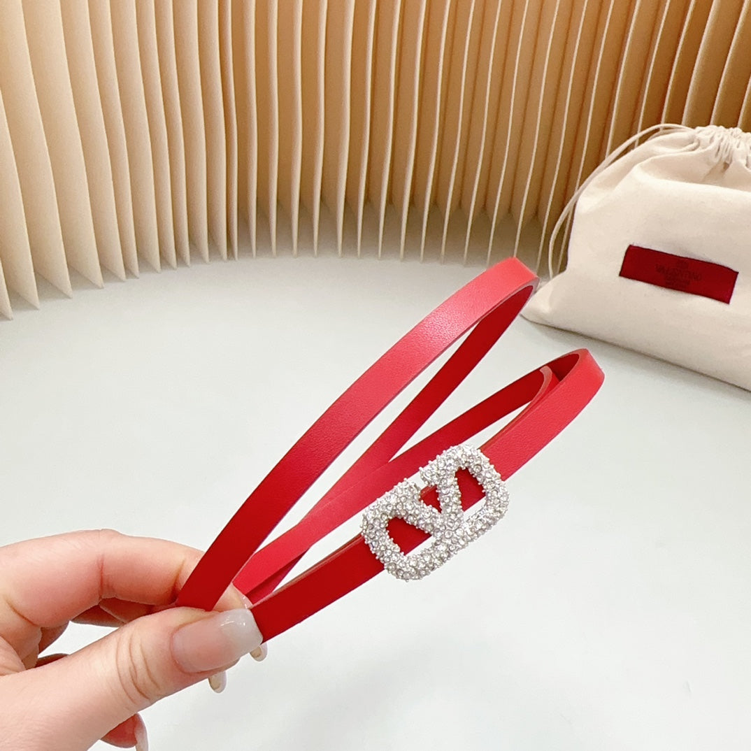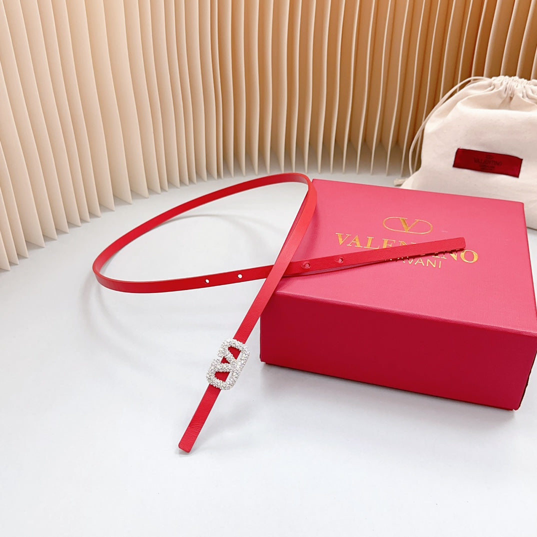 VL Belt 8mm Buckle Silver Diamond Leather Red