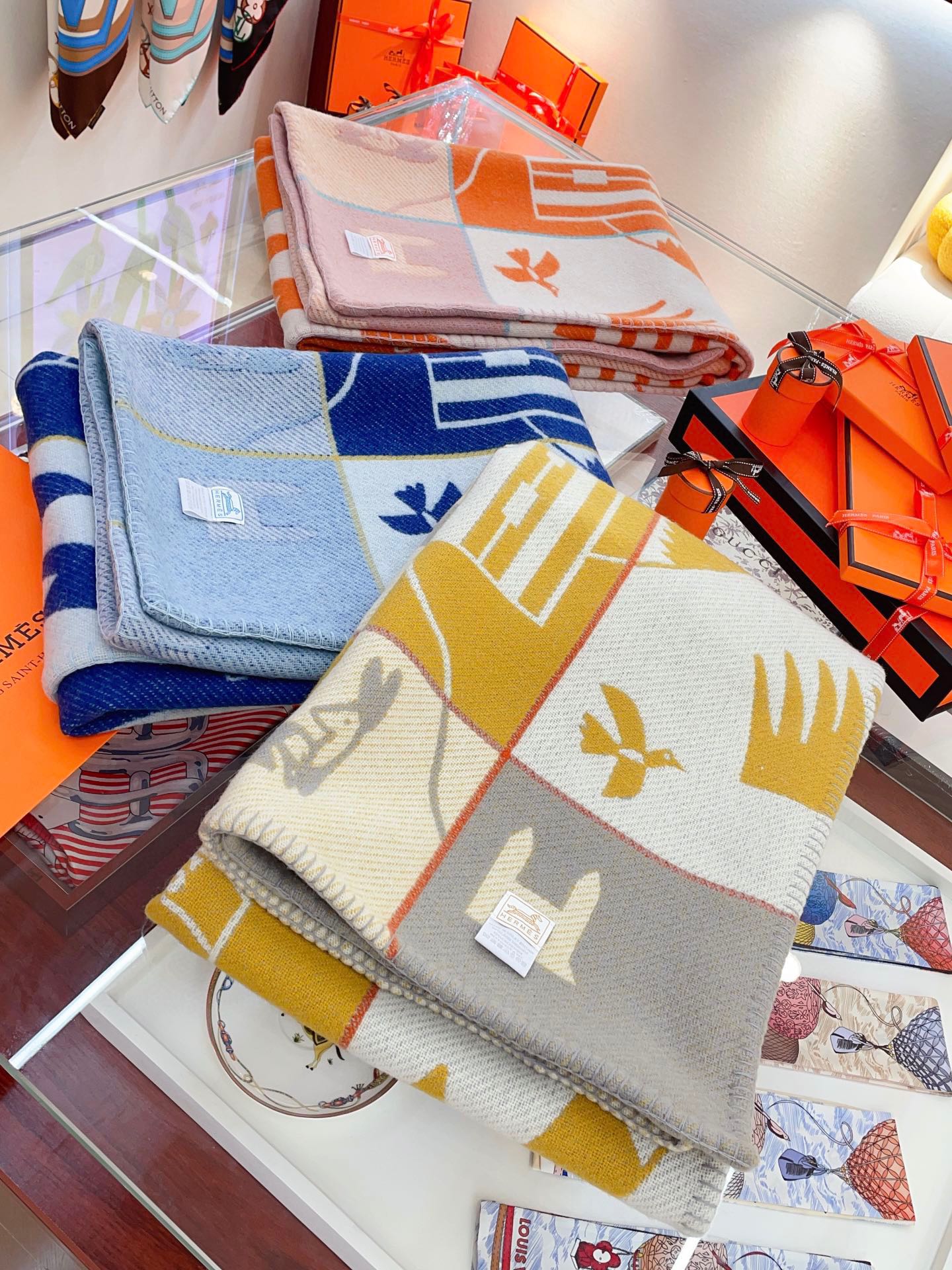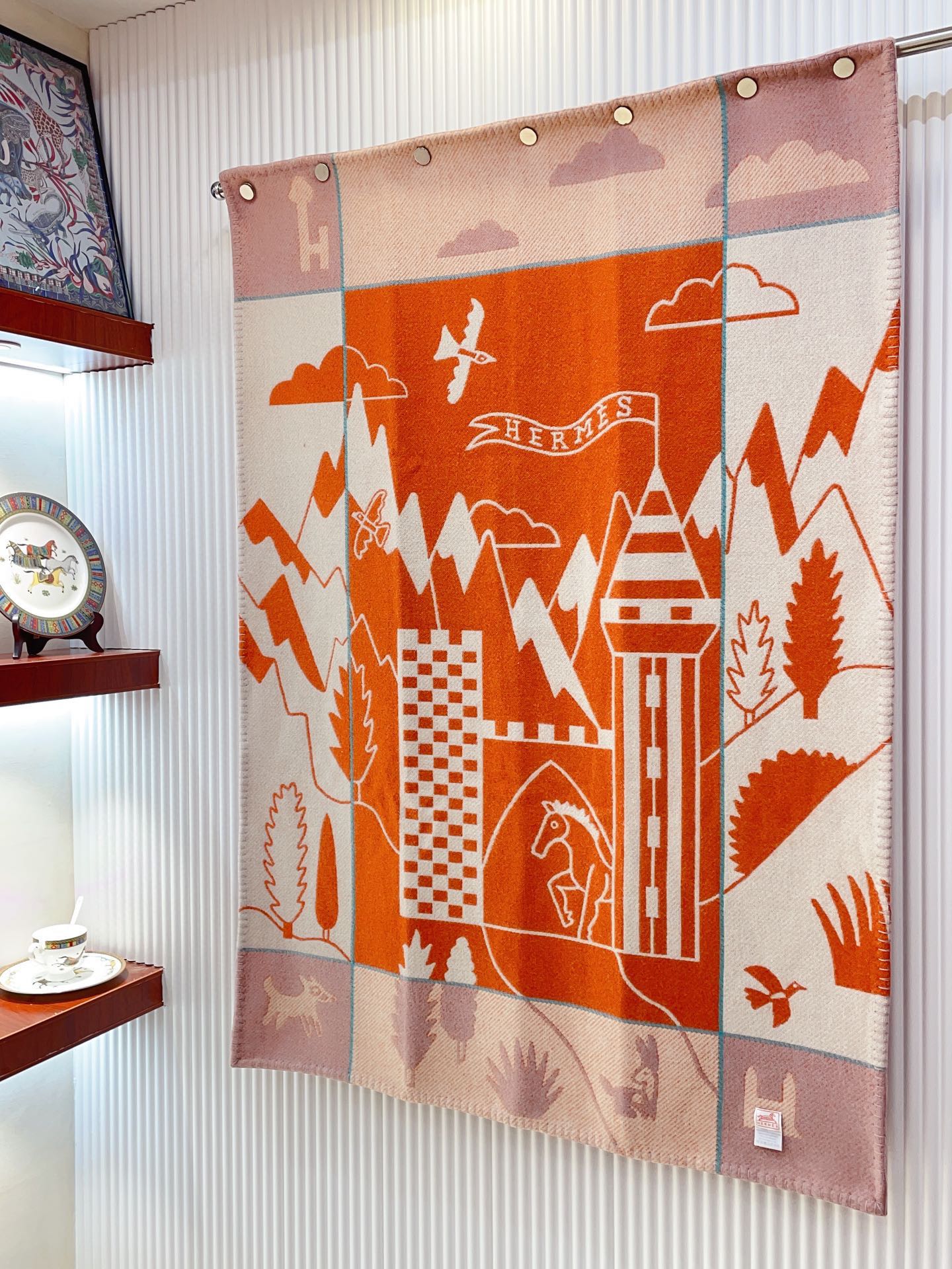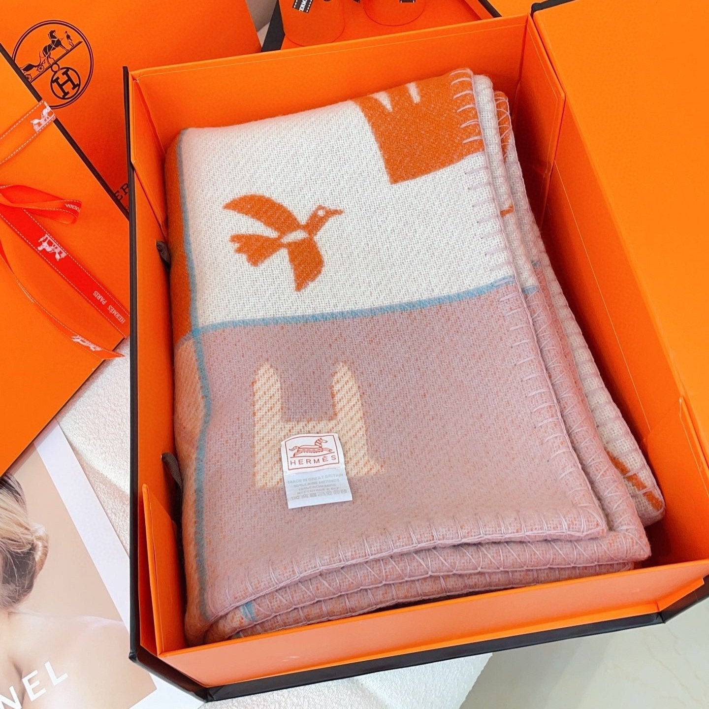 Baby Blankets 140 CM In Orange Mix Light Pink Cashmere And Fine Wool 341413