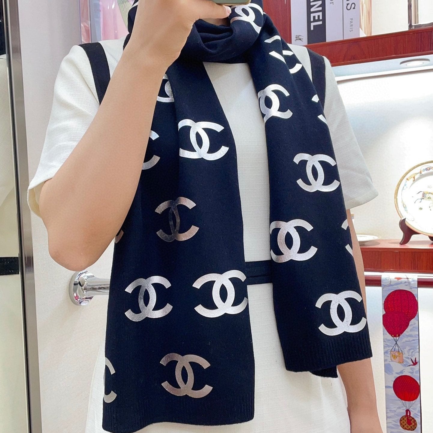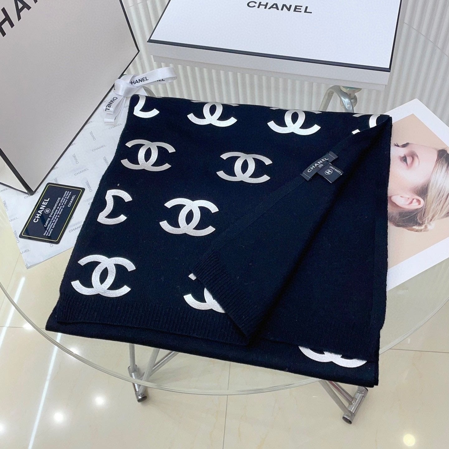CC Scarf 190 CM In Black Logo Print Cashmere 401171
