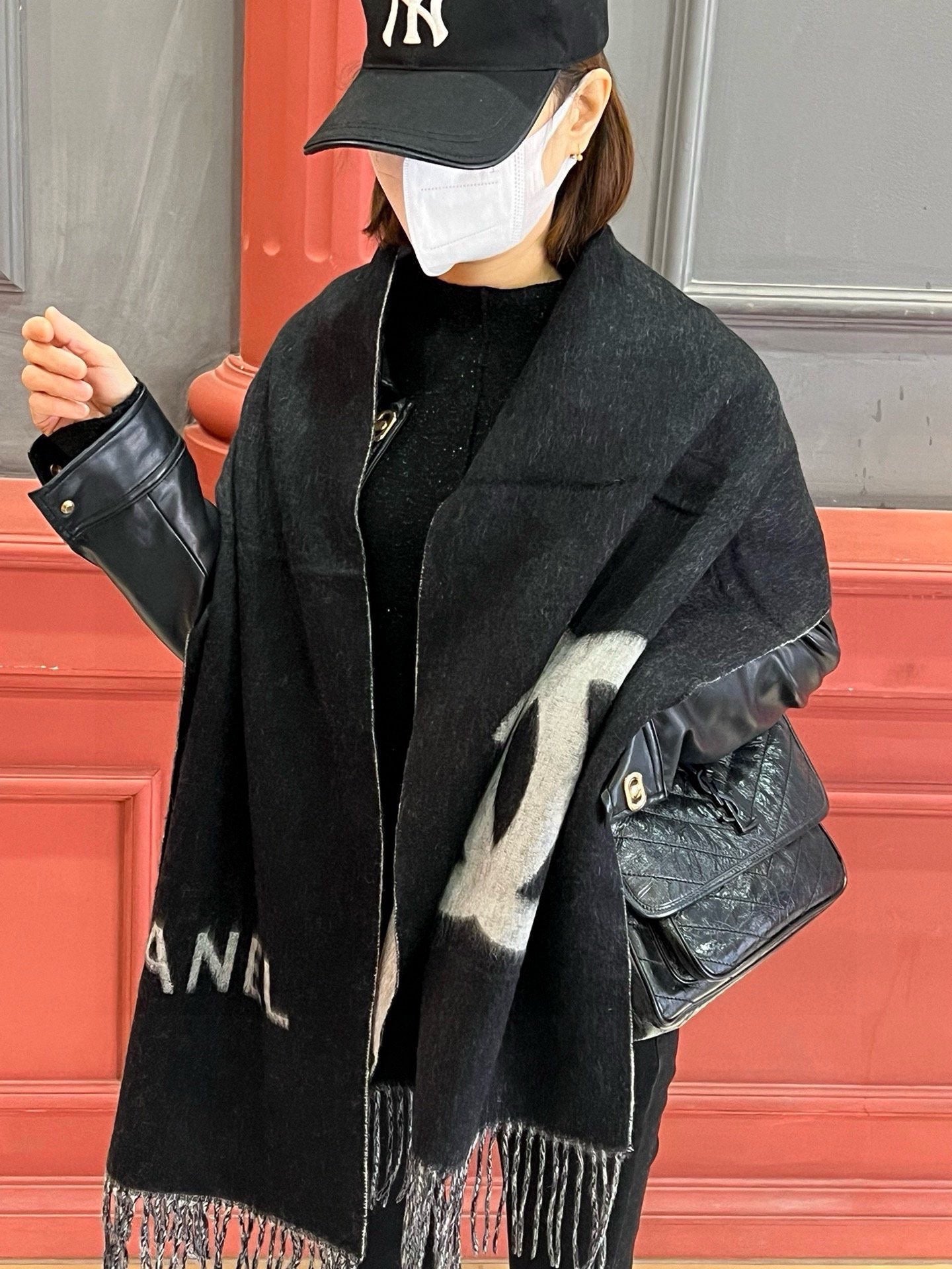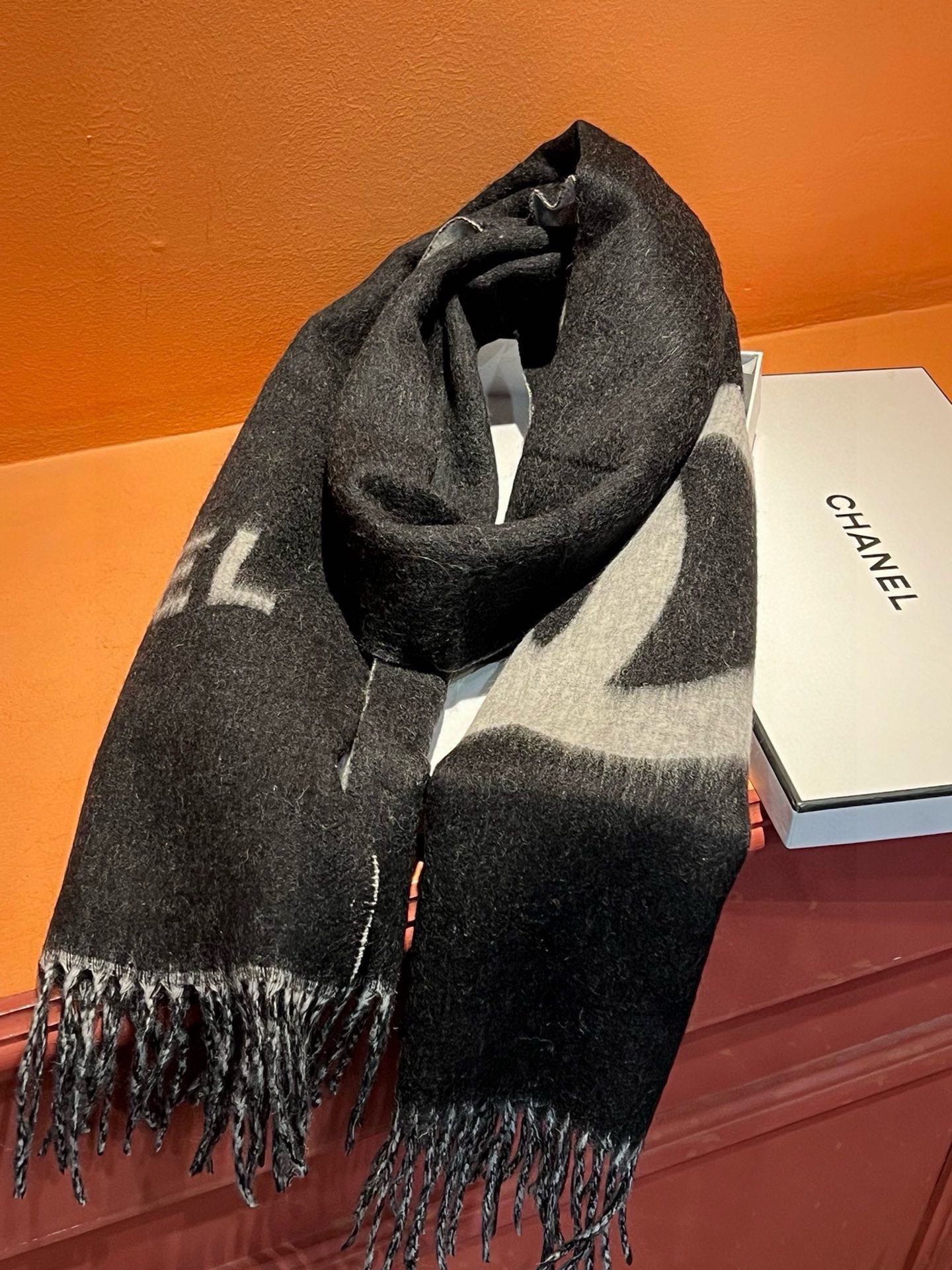 CC Scarf 200 CM In Black Mix Grey Cashmere 304302